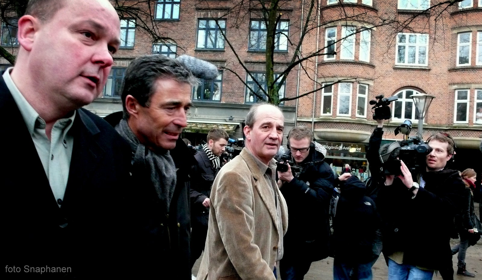 En spindoktor har tænkt tanker. Der er længe til 2- 4 april i Bukarest, politisk talt. Baglandet murrer, Fogh må vise sig. I København. Nogle lokale utilpassede ville ikke filmes og kræver båndet udleveret af en fotografen. Der var masser af TV, så de kan dårligt undgå at komme i TV. Sortklædte “autonome typer” råber : “Hver sten du træder på, Fogh, skal udskiftes”. Det er Venstre i fjendeland. Kai Nielsen er en anden tid, næsten et andet sted. Hvis demokrati er samtale, er samtalen ikke sunket helt ind her.