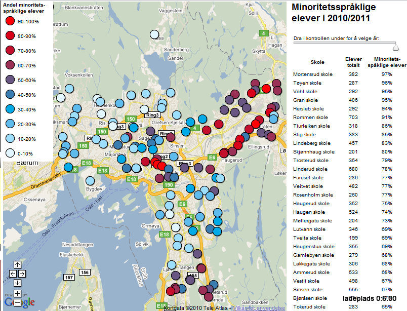 siger skoleråd Torger Ødegaard (H) – “Det er ikke ideelt med skoler som har 80-90 prosent elever med etnisk minoritetsbakgrunn. Men vi lever ikke i en ideell verden.” De fem siste årene er antall skoler hvor norskspråklige elever er kommet i mindretall økt med 18, fra 40 til 58.Ved årtusenskiftet hadde 31 prosent av elevene i Oslo minoritetsbakgrunn. Norskspråklige elever kan bli i mindretall i Oslo i 2021, Norskspråklige kan bli minoritet.