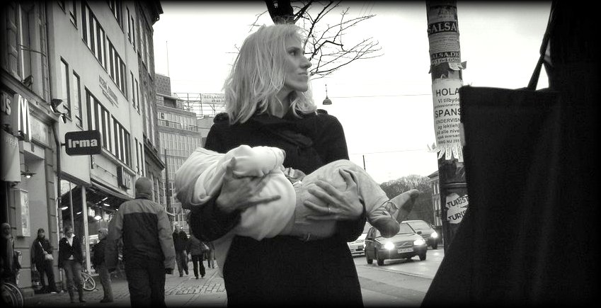 Fotografier man ikke kan aflæse på et sekund, får en til at blive hængende, og det kan jeg godt lide i en tid, som er overfodret med billeder, ingen gider se på. De to kvinder står som en skulpturgruppe, sådan poserer ellers militante demonstranter da ikke? Hvorfor er de på hver side af hegnet? Er det en nedlagt lufthavn, hvor ukrudtet pibler op gennem betonen? Tempelhof? Femen France. – Jeg tog det nedenfor for nogle år siden, og jeg kan stadig ikke læse dets historie. Det er derfor, jeg husker det. Bærer man sit spædbarn sådan? Hvad ser hun efter en vinter i myldretiden på Nørreport? Klik dem større. – Søren Ulrik Thomsen sagde forleden om litteraturen – men det gælder så meget andet – at: