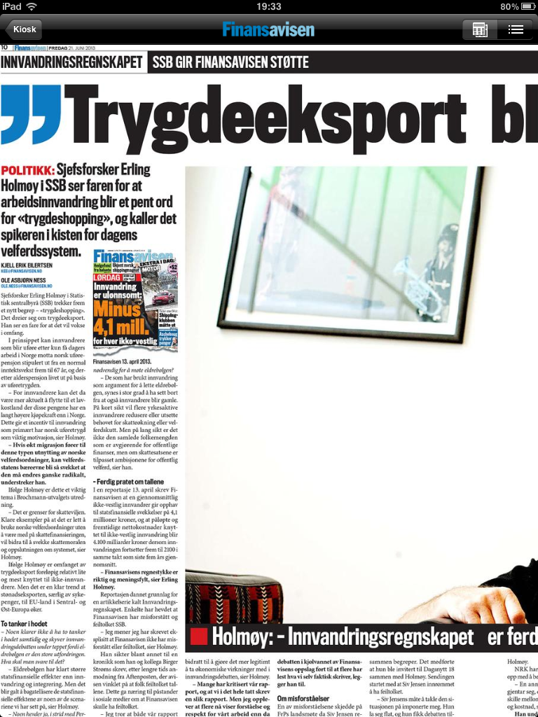Finans­avi­sens artik­kel fra 21. juni: «Har dob­let inn­vand­rings­kost­na­dene» er ikke på nett.