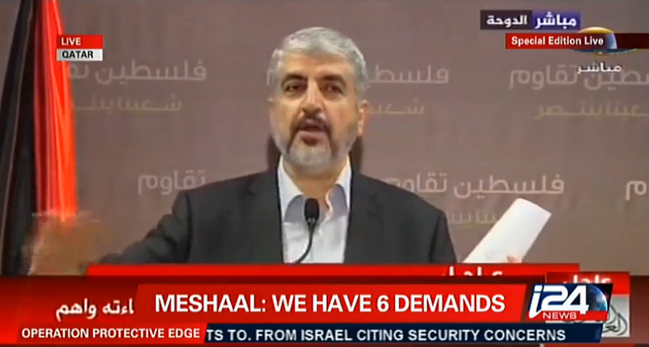 Khaled Mashal er stor i munden til aften på I24. Der skal ikke være nogen våbenhvile, siger han fra sit skjul i Qatar. “Alle er lykkelige og stolte, Hvis I er parate til at dø, er vi også parate til at dø”. Selvom Gaza synker i grus, klarer han sig nok. Det er som at høre Hitler rable fra førerbunkeren. Khaled Mashal erklærer sejr, angriber alt og alle. “Det betyder han er parat til våbenhvile, vi ER i Mellemøsten,” siger kommentatoren. “Det er jo mafiosoer”, mente han vist, og i Sverige vil en Miljøpartist erklære Israel global krig. Vi har nedlagt for mange sindssygehospitaler. Så snart våbnene tier, vil nye millioner af dollars tilflyde Hamas fra Vestlige ledere, der ikke kan se et problem, de ikke kan løse uden at smide penge efter det.