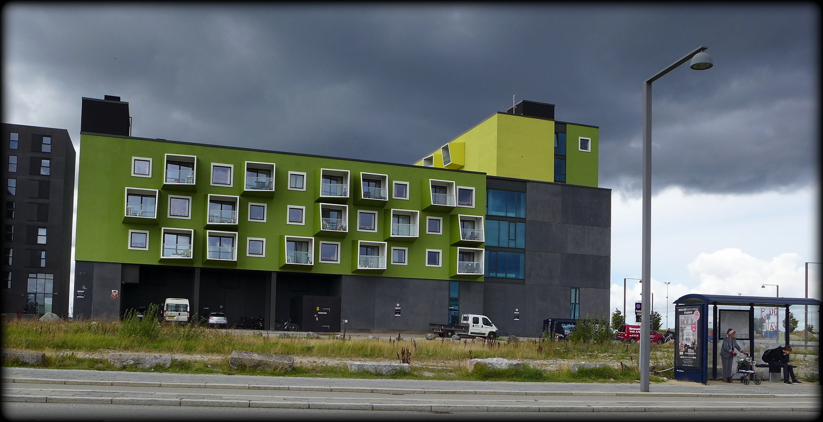 Alligevel synes jeg der er en underlig infantil candyfloss-æstetik over flere af bygningerne derude. Lidt hoppeummet for de helt små på Helsingør-Helsingborg overfarten. “Glade farver.” Det kunne nydelige damer af Louisiana-segmentet sige til Svend Wiig Hansen i den bedste mening om et maleri af hans, og han blev ikke rigtig glad, for mange var undfanget i besværlige perioder. Ørestaden er stadig et sted, man flygter hjem fra. Det blæser altid koldt nær høje huse.