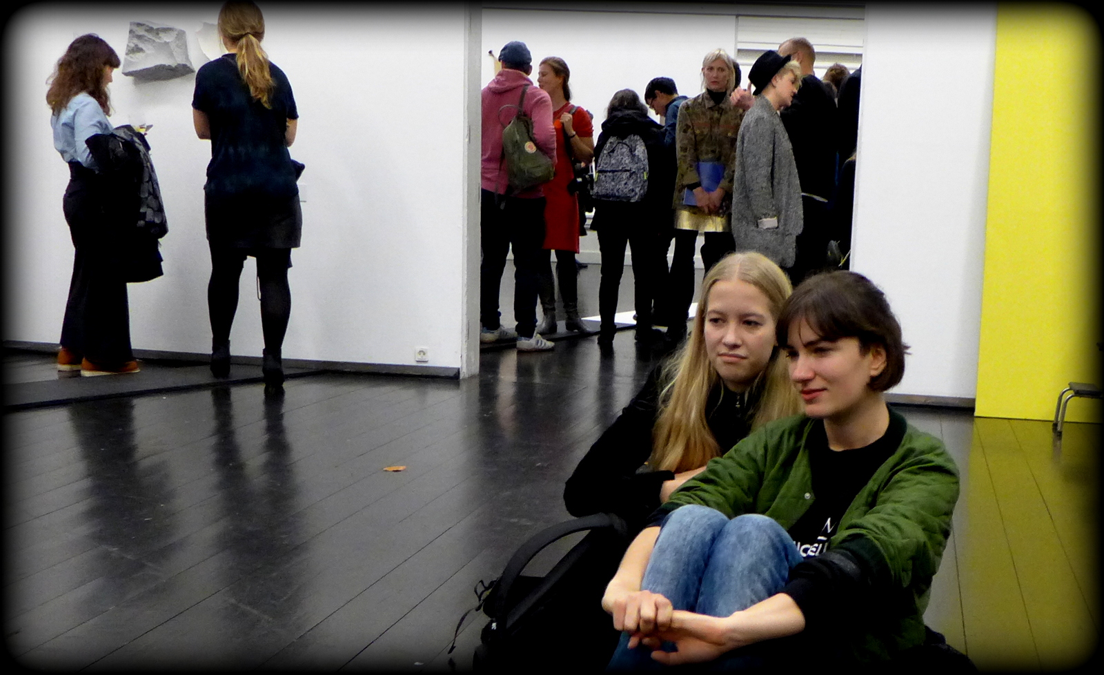 Der stod en kvindelig kunstner udenfor og opførte en happening. Hun var blevet afvist. Hun viste mig nogle af sine ting, og hun var faktisk talentfuld. Jeg skal finde navn og mine fotos