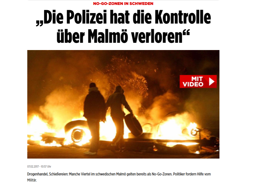 BILD. 12.1 mio daglige læsere. „Die Polizei hat die Kontrolle über Malmö verloren“ (log in) I Østrig læser de den også. Nu bliver “svejseren” ked af det igen. Jeg kunne forlade emnet efter 15 år, virkeligheden har indhentet mig: Det er selvkørende. For 15-20 år siden var vi en lille skare af udskældte personer, der dokumenterede Sverige. Nu er det blevet MSM-stof, og man tør nok love, at det vil blive det endnu mere allerede de nærmeste år.