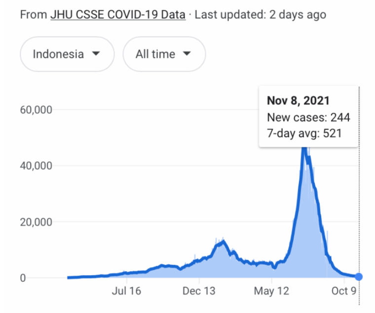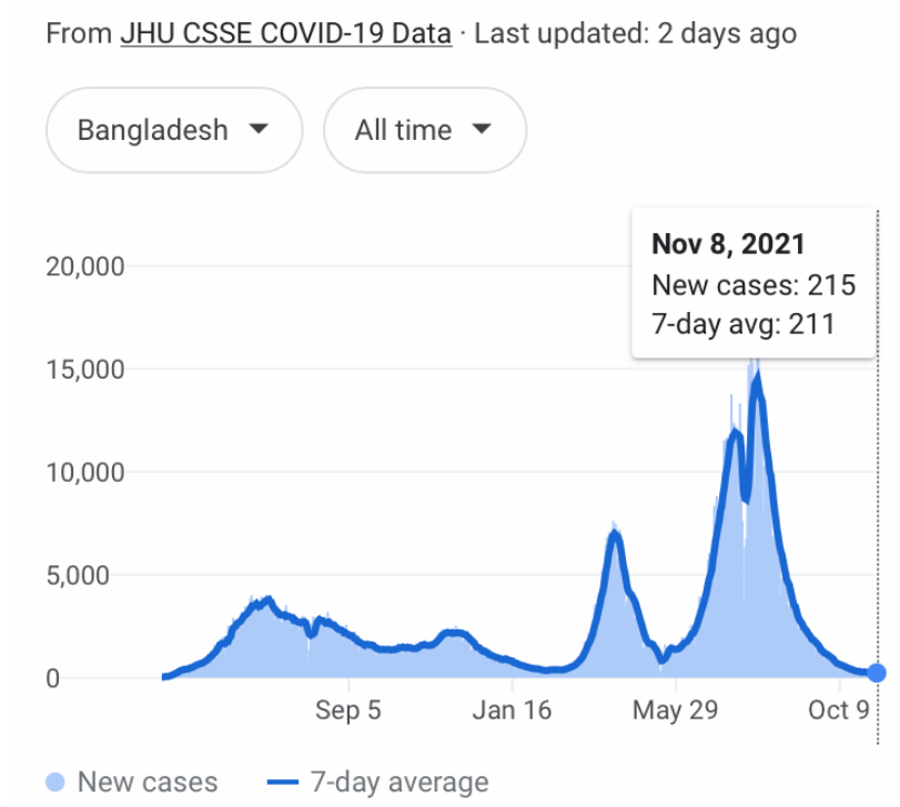 India, Bangladesh, Pakistan, and Indonesia collectively have 2 billion people… and essentially no access to advanced Covid vaccines. They are among the world’s most densely populated and poorest countries – fertile ground for Sars-Cov-2. So the epidemic must be out of control from Karachi to Jakata, right? Let’s take a look. Journalisten Alex Berenson (se det hele) Tal fra John Hopkins University Coronavirus Center.