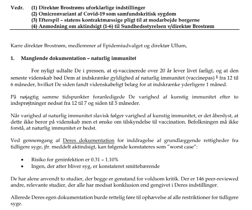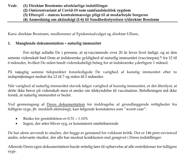 til Søren Brostrøm, SSI og Folketingets Epidemiudvalg fra advokat Erik Sørensen