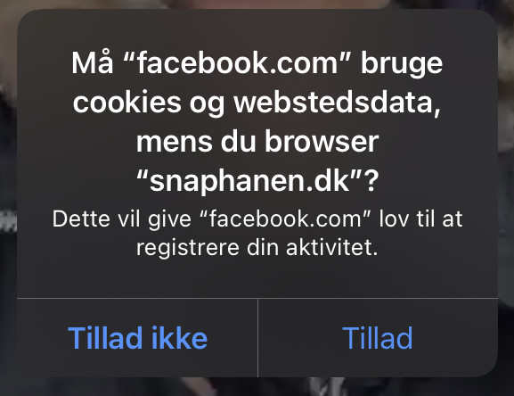 Man kan dog godt trykke “tillad”, se videoen, og så bare slette websteddata bagefter i indstillingerne på sin tlf/tablet. Men man hjælper facebook med at være facebook imens hvis man gør det på den måde, og det virker heller ikke altid hvis man ikke er logget ind/har en facebook konto.