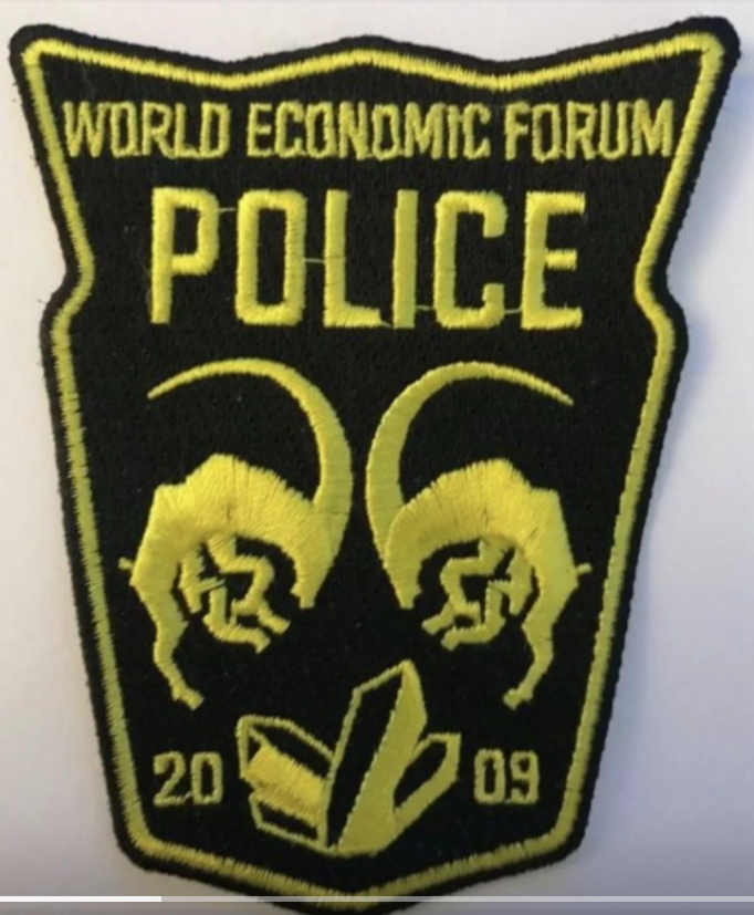 Læg mærke til skuldermærkaterne: World Economic Forum Police. I forvejen er Davos fuld af militær.