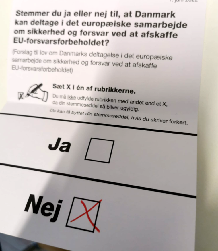 (Så kryptisk er stemmesedlen forsætligt formuleret. Kryds af ved “nej” – Steen)