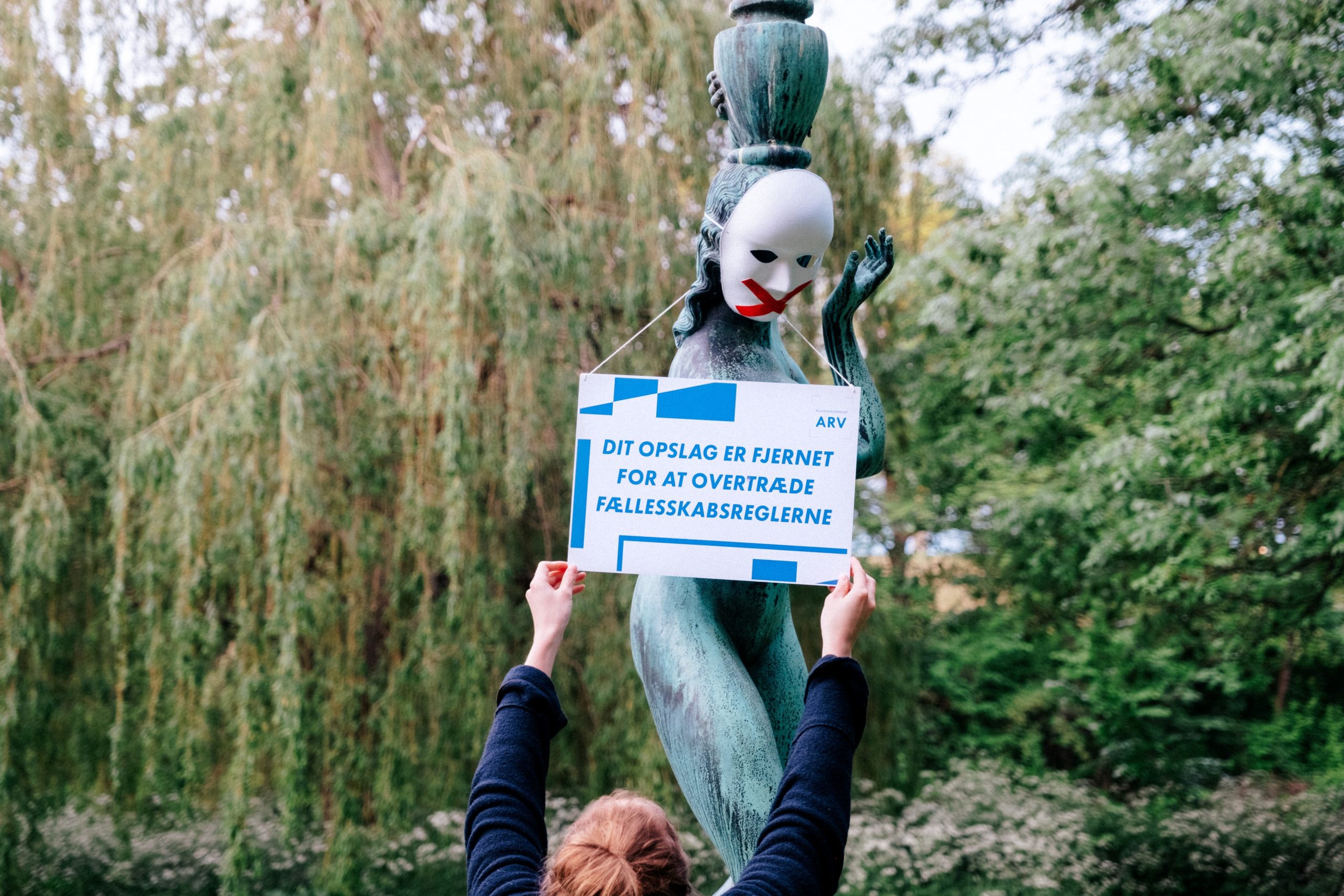 Statuer over hele København blev i går pyntet med masker og skilte. Hvorfor det? Fordi de er utilfredse med censuren på sociale medier. Hvorfor skal vi finde os i, at store tech giganter skal bestemme over hvad danskerne må ytre på sociale medier? I teorien har vi ytringsfrihed, men vi må ikke bruge ytringsfriheden på nutidens største politiske [emner?] Det tidligere generationer har kæmpet for, er nu sat ud af kraft pga. tvivlsomme personer i Silicon Valley. Vi kræver lovgivning om ret til ytringsfrihed på sociale medier nu! Læs videre på Kunstnerkollektivet ARV