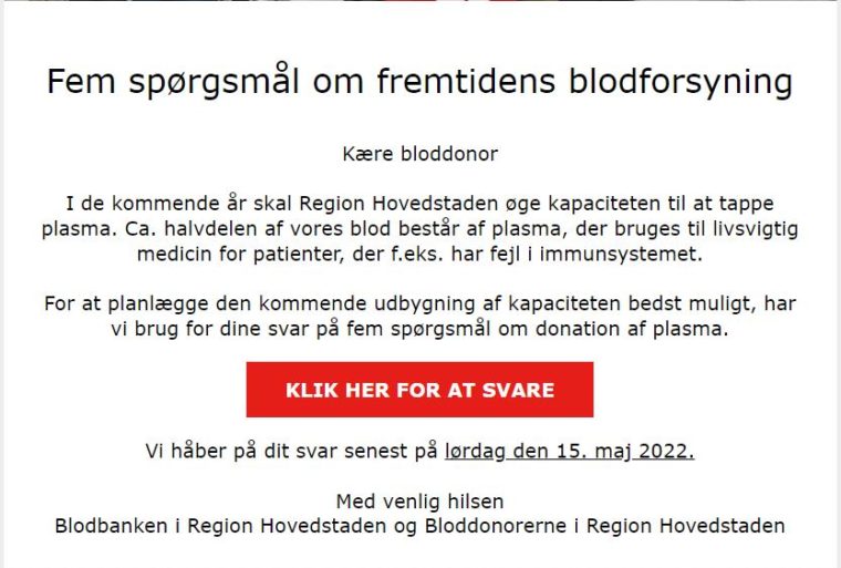 Som, nu eksblod/plasma-donor,(jeg tør sgu ikke mere, tænk hvis man bliver injiceret med “noget” den anden vej) fik jeg en mail, hvor de efterspørger flere plasma-donorer, jvf det vedhæftede billede. Læg mærke til teksten “for patienter, der f.eks har fejl i immunsystemet”. Ja det tror jeg på.