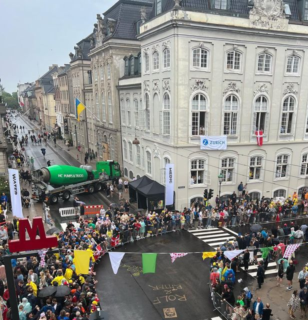 Beskyttelse mod “car-jihad” i form af lastbiler var opstillet ved alle strategiske steder på ruten i København, ofte flere og med trailere. Her er det krydset Frederiksgade-Bredgade nær ved Amalienborg. Et særpræget syn Frederiksstaden ikke er vant til. Portræt af “multikulturen.” (foto privat)