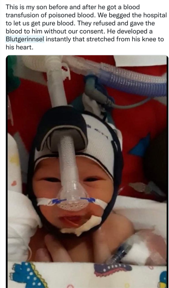 Dette barn fik blodtransfusion. En uge efter billedet blev taget, var det dødt