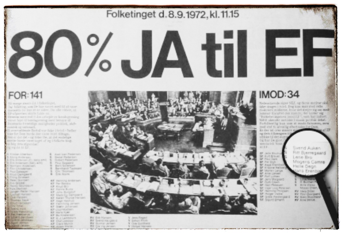 I min roman Når den stærke vogter sin gård, hvis handling slutter i 1975, går kampen mod EF som en rød tråd gennem fortællingen. Jeg har ønsket at skildre denne kamp, ikke alene fordi den er prisværdig, men også fordi de færreste har forstået, hvor alvorlig en beslutning det var, da et stort flertal i 1972 stemte for Danmarks medlemskab af det, der dengang blev kaldet fællesmarkedet.
