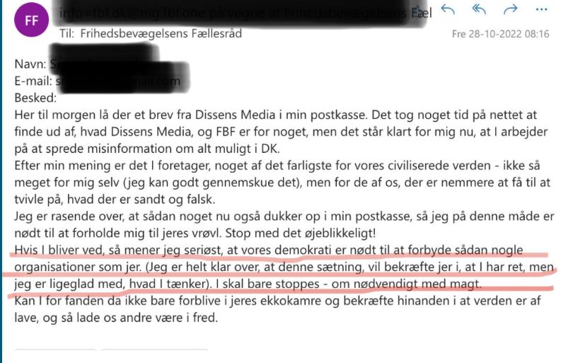 Som en kommentar til dit gode indlæg bringer jeg her et klip fra det sidste nyhedsbrev fra “Frihedsbevægelsens Fælleråd” . I denne forenings regi har vi uddelt 100-tusindvis af foldere, både på gadeplan og i folks postkasser. Blandt andet en folder, der gør reklame for FBF eget medie “Dissensmedia”. Når man får svar tilbage som denne, er deres kommende, for tidlige død dem vel undt. Sorry, men man bli’r nemt smittet af kynismen, omgivet af så mange med så lidt respekt for det liv og de goder i livet, andre har sikret dem, og som de ikke agter at røre… Read more »