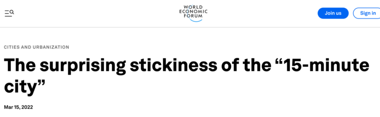 De ikke-valgte hyperrigmænd i World Economic Forum har en forunderlig magt over demokratiernes politikere. Klaus Schwab praler endda med, hvordan han har kuppet demokratierne. Om deres politikere så overhovedet har lov, at forære os væk og skifte styreform, kan man tvivle på, men i erkendelse af, at demokratiet er blevet rent teater, kan man i det mindste lade være med at deltage i det. WEF The surprising stickiness of the “15-minute city.” Her er din fremtids tilladte zoner i dit liv som fange og slave: