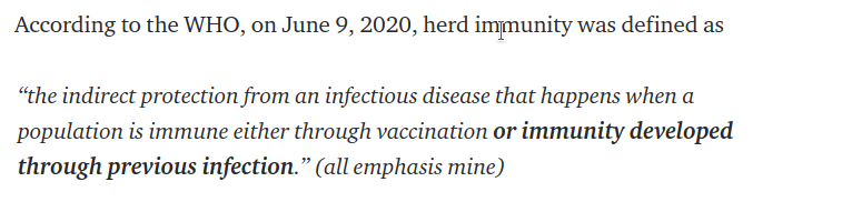 WHO, som vi skal ud af hurtigere end vi skal ud af FN, forsøgte at omdefinere herd-immunity, på dansk flokimunitet. Det er meget svært at finde på nettet ting der er behagelige for myndighederne forsvinder sporløst, men her er lidt. Det handler om at WHO ville fjerne naturlig immunitet opnået ved at have haft sygdommen og derefter blevet rask, med at KUN vaccinering talte. Follow the money.