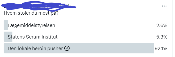 Her er en morsom meningsmåling, sakset fra Twitter. Den er nok ikke “repræsentativ”, men det tvivler jeg stærkt på ret meget er af de meningsmålinger, vi får præsenteret i MSM: