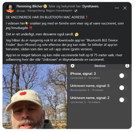 Flemming Blicher har undersøgt, om det passer, det med at de injicerede har en kode i sig, så man kan registrere om folk er injiceret eller ej: