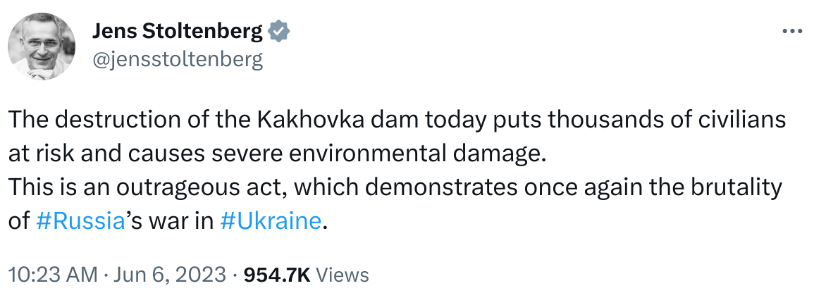 Danske medier og politikere er pr. automatik havnet her: Militæranalytikere kan pege på to grunde til, at Rusland kunne stå bag dæmning-sprængning Jyllands Posten er ikke i tvivl om, at Rusland gjorde det: Panik eller smart plan? Sprængning af dæmning kan blive et selvmål – og sådan fortsætter det i propagandapressen hele vejen rundt. Sandheden spiller en absolut minimal rolle i tidens krigsjournalistik. Tucker siger det selv: “Nysgerrighed straffes i dagens medier.” – Den 9.6 har 100 mio set episoden. Normalt så 3-5 mio Tucker på Fox. Der er raseri i MSM over Tucker, for de ser deres egen undergang i den fri, ubundne publiceringsform. Afmagtens fnys. Se bare ham her i Expressen: Tucker Carlson är vä.rre och större än någonsin