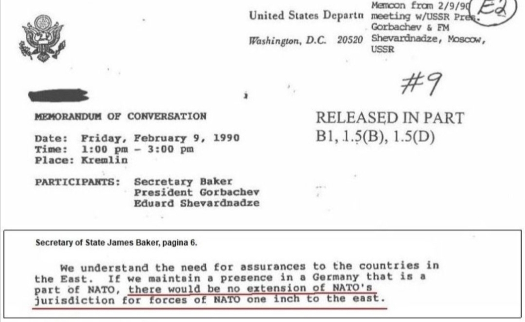 Jeg har set i de statsbetalte medier, at dette løfte ikke skulle eksistere, men hvem tror efterhånden på dem? Dette memorandom af en samtale i Kreml i 1990 ser ægte ud, og det er det da også ifølge National Security Archive. Man kan prøve at søge den engelske tekst.
