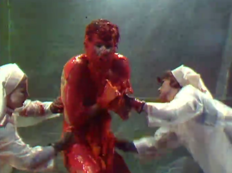 I dag kan man heldigvis på DR se en optagelse af den hele på video, så man selv kan se efter, om min association holder vand. DR Dødens Triumf, 1973.Tid: 01:19:27