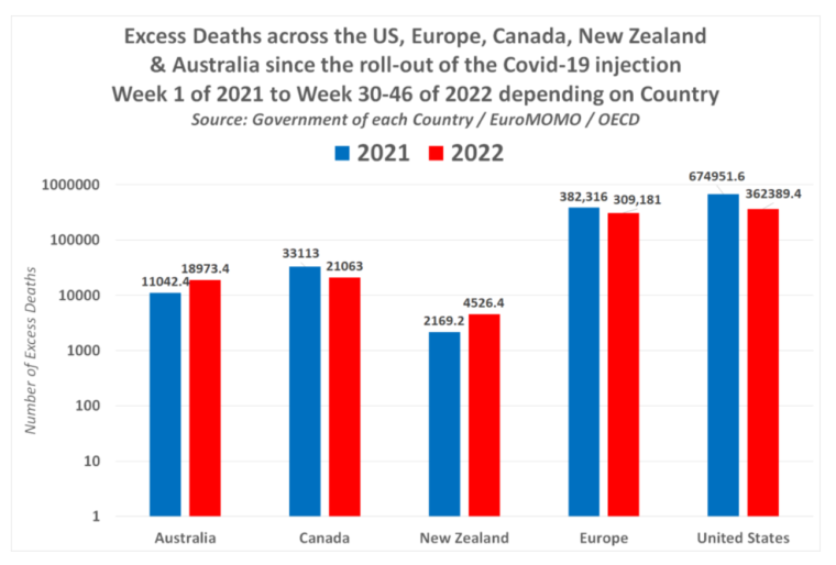 Shockingly, even countries like New Zealand, Australia, and Canada have seen excess deaths that have not decreased since the rollout of the Covid-19 vaccine.