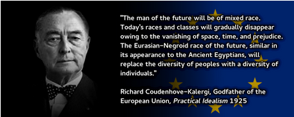 I dette tilfælde er det vigtigt at være bevidst om at muslimer bliver udnyttet og er en brik i et meget større spil om bl.a at undergrave Kuktur og Lande for at bane vejen mod forenede eu stater og brune slaver til at opvarte eliten. Ifølge R N Coudenhove-Kalergi, der anses for en af de stiftende fædre af eu, i hans bog fra 1925 “praktischer idealismus”.