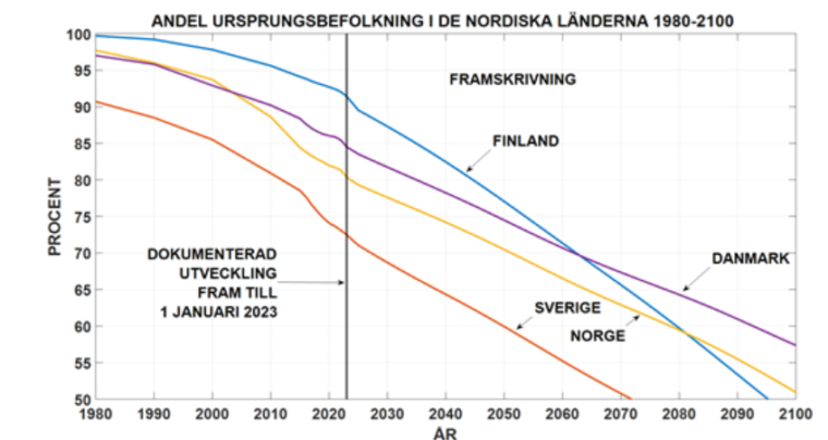 Professor Kyösti Tarvainen ved Aalto Universitetet i Helsinki har regnet på, hvad fortsat indvandring til Norden på det nuværende niveau kommer til at betyde for demografien, økonomien og gennemsnitsintelligensen. Han mener, det er helt nødvendigt at nationerne overtager indvandringspolitikken fra EU, hvis de fortsat skal bestå. Han har informeret “EU:s invandringskommissionär Ylva Johansson och president Ursula von der Leyen om den demografiska utvecklingen i figur 1, som innebär de nordiska nationalstaternas undergång. Men de har inte reagerat eller bara låtit sina medhjälpare upprepa EU:s regler.”