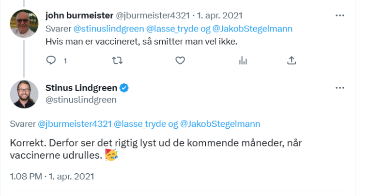 Det er en komplet vild svada, nærmest en blank tilståelse af, at JP sådan set ikke er interesserede i fakta. Hvem var det der kom med “hjemmebrygget lommevidenskab”? Søren Brostrøm: “man lever livet farligt i Danmark denne her vinter, hvis man er uvaccineret voksen – så tag vaccinen! Også, hvis du er i 20’erne og føler dig usårlig – du lever livet farligt!” Det var løgn, og han vidste det da han sagde det – prototypeeksemplet på desinformation. I bedste fald gjaldt det nogle få promiller af befolkningen, som var i risikogruppe. Eller hvad med “Epidemiudvalgets” formand? (det udvalg, som… Read more »