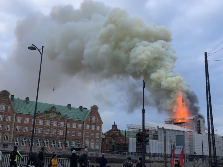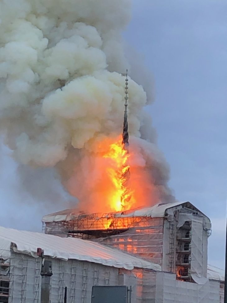 End ikke Børsbygningen, verdens ældste, kunne vi passe på. Jeg så den brændte i morges, og resten af dagen har jeg ikke set mere om sagen. Jeg kunne ikke holde det ud. Jeg fik disse billeder fra en ven, der arbejder lige ved siden af. Fotos © Michael Thestrup, Snaphanen.dk. Se Det vigtigste gik tabt.