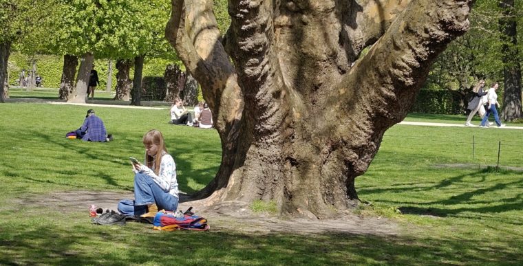 Pludselig blev det sommer og 21 grader omkring 1 maj. Den tomme park blev fyldt af mennesker, store og små. © Snaphanen.dk