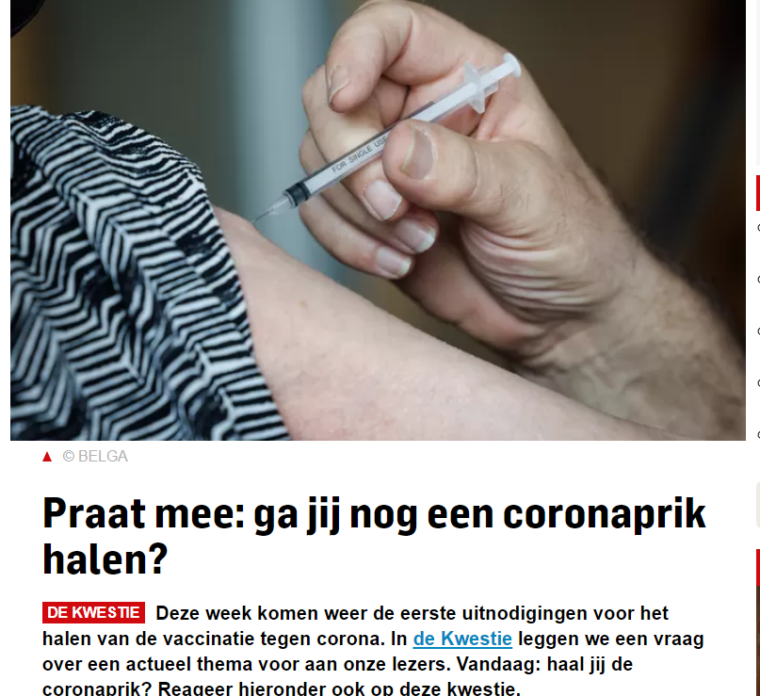 Holland skal til at begynde på endnu et vaccinationsprogram. Derfor spurgte avisen Algemeen Dagblad sine læsere, og de var villige til at lade sig vaccinere igen. Næsten ingen af de 928 kommentatorer skulle nyde noget af det. Deres svar er en lang sygehistorie af blodpropperi hjerne og hjerte, og det mærkelige er, at bladet ikke har censureret dem.