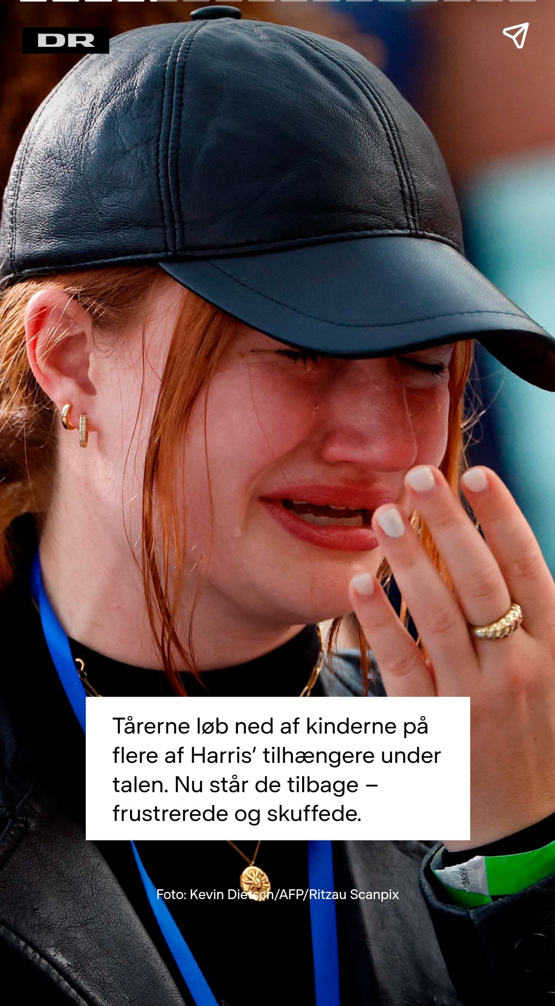 Donald Trumps jordskredssejr ved præsidentvalget har medført en blanding af gråd og raseri blandt Kamala Harris’s slagne skare.