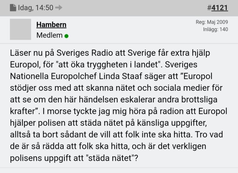 De svenske myndigheder, der lyver, misinformerer og fortier for at beskytte sig selv imod følgerne af det, de har påført landet, har tilsyneladende fået Europol til at hjælpe sig med at skjule sandheden om massemordet i Ørebro. Hvordan kan de undre sig over, at de gøder spekulationer og “misinformation?”