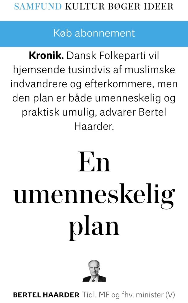 Bertel Haarder: “Repatriering er umenneskelig”
