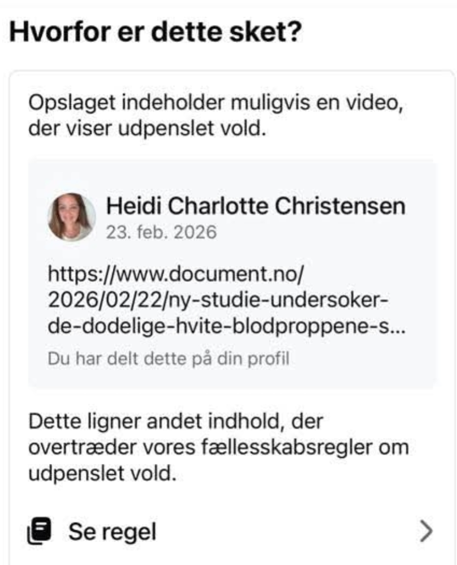 Folk der forsøger at dele denne Snaphanen-post på Facebook, får denne besked