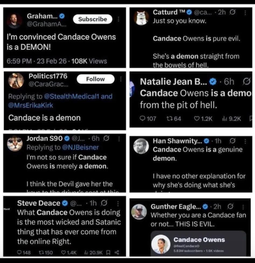 Ikke så mærkeligt føler meget stærke kræfter i USA og verden sig truet af Candace Owens undersøgelser, og det har sat en netkampagne igang imod hende, det er svært at undgå at bemærke. Man har prøvet at købe hende først, ligesom mange af de såkaldte “influencere” fortæller om – dem der ikke lod sig købe, altså. En af dem, der er købt, er Dan Bongino, en fuldstænig skamløs, åndelig luderkarl.