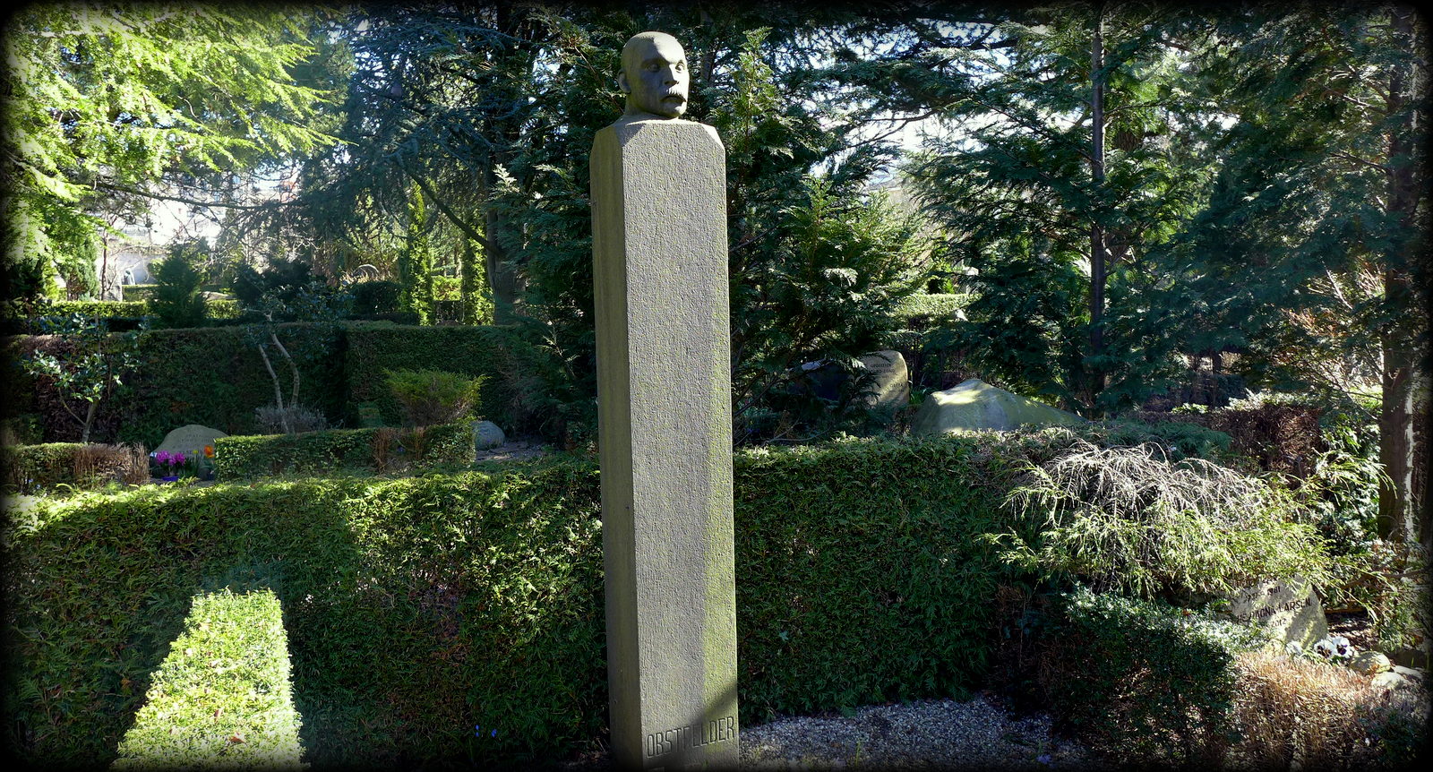Sigbjørn Obstfelders grav på Frederiksberg Kirkegård, buste af Gustav Vigeland.